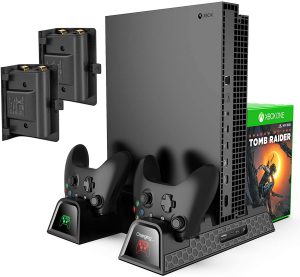 Infine, per completare la vostra postazione di accessori per Xbox, consigliamo di aggiungere anche un supporto con ventola di raffreddamento. Quella che segnaliamo qui è prodotta da Kingtop, ed è caratterizzata da una struttura in plastica ABS. Migliora l’areazione della console e consente in contemporanea di ricaricare i controller. Indica anche l’avvenuta ricarica, grazie alla presenza del led verde a forma di controller.