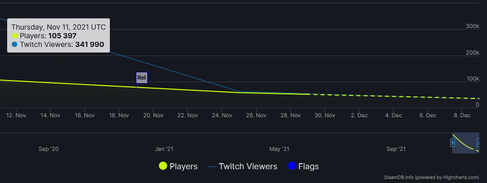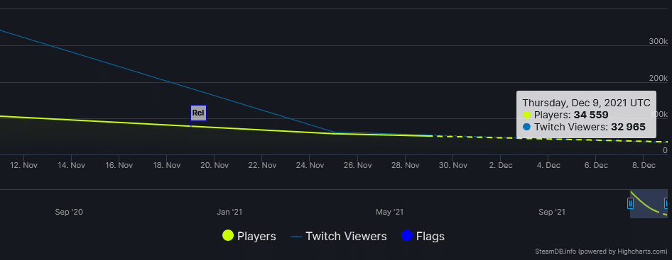 Lanciato ufficialmente il 19 novembre, ma disponibile in accesso anticipato già dal 12 novembre, BF 2042 ha registrato un picco massimo di 105.397 giocatori online contemporaneamente. Gli ultimi dati raccolti risalgono al 25 novembre, segnano un bilancio di soli 57.186 giocatori attivi e un calo quasi del 50% rispetto alla settimana precedente. Secondo SteamDB, entro il 9 dicembre il numero di giocatori è destinato a scendere fino a 30.000, si tratterebbe di un risultato estremamente negativo a meno di un mese dal day one.