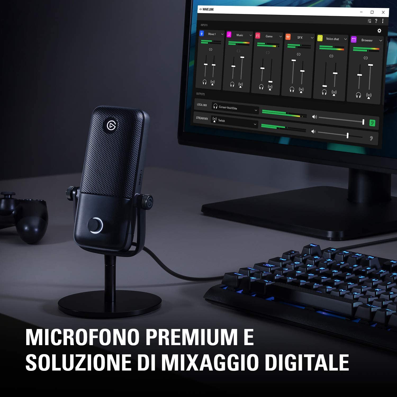 Oltre ad una qualità audio ottima, il Wave 1 è dotato di un’interfaccia software intuitiva e ricca di funzioni interessanti. Grazie al nuovo programma Elgato, è possibile utilizzare il microfono come una console di regia audio, un vero e proprio mixer multi-canale che permette di dividere le sorgenti audio per gestirle singolarmente.