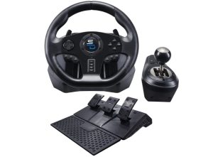 Se cerchiamo un kit volante molto professionale è possibile dare uno sguardo al SUBSONIC Superdrive, un kit completo dotato di leva del cambio manuale, pedaliera con 3 pedali (frizione, freno e acceleratore, volante ergonomico con raggio di sterzata di 270 gradi, paddle per il cambio di marcia al volante e sistema di fissaggio a ventosa o a morsetto.